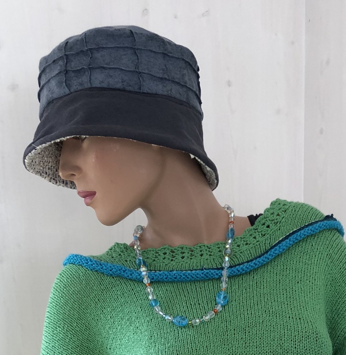 Glaskette auf Baumwollpulover Hut reversibel