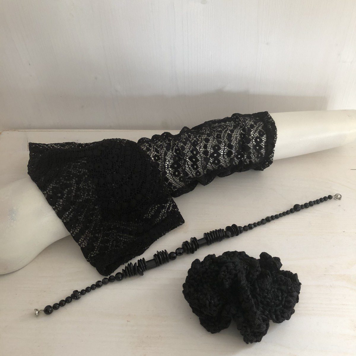 Tango Leichte Halskette, div.Materialien, Magnetverschluss Armstühlen, Spitzen Ansteckblume, Papiergarn
